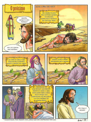 Um homem viajava de Jerusalém para Jericó. No caminho ele foi assaltado por marginais. Roubaram todos os seus pertences e o maltrataram muito, deixando-o muito machucado... quase morto.